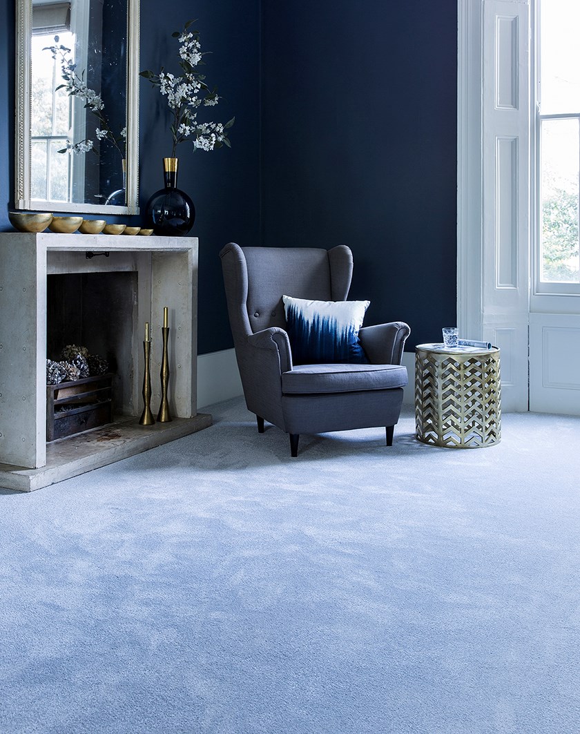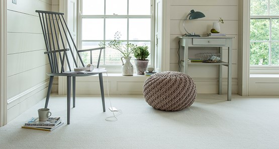 Period properties lend themselves to large windows, high ceilings and traditional fireplaces. They provide an ideal space to use darker colours on walls, play around with carpet textures to complement the heritage of the home and add warmth. Here, our Sensation carpet in shade, “Cape Diamond”, sits well with white woodwork and a vintage style armchair to achieve a classic shabby chic interior.